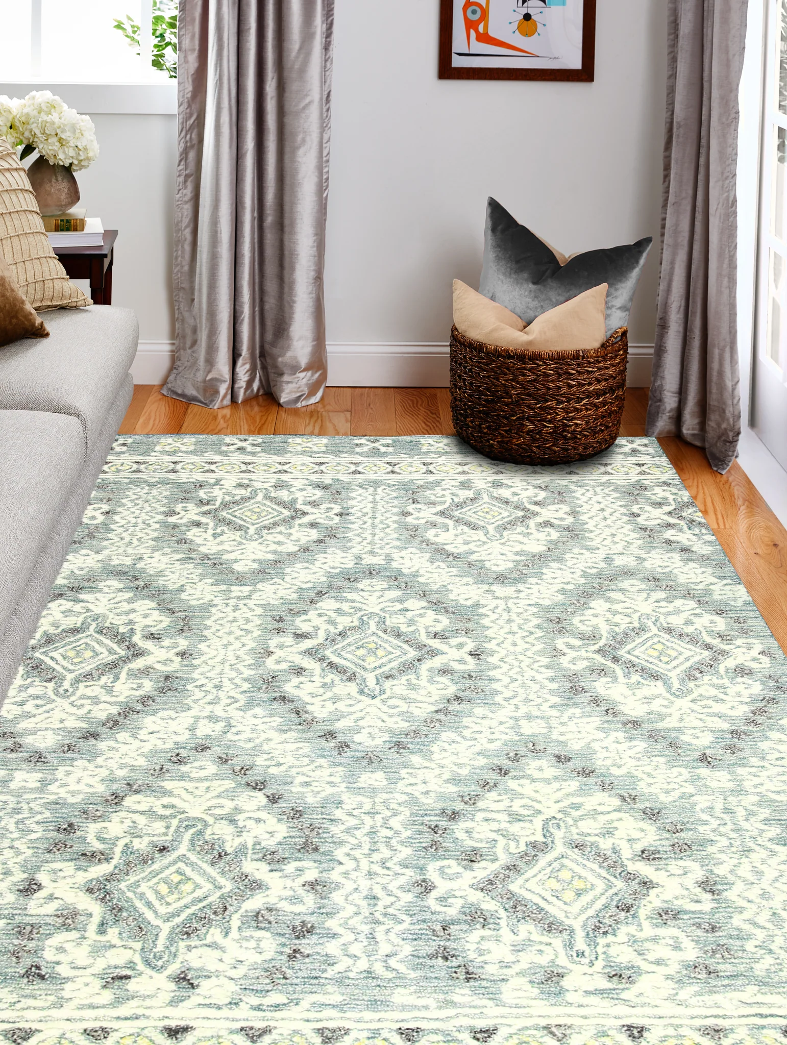 Rahni Verona Collection by Bashian. An extensive collection of transitional and contemporary patterns area rugs in a textured, loop and cut, tufted construction. Pleasing designs in fresh, new colorations are enhanced by subtle abrash.