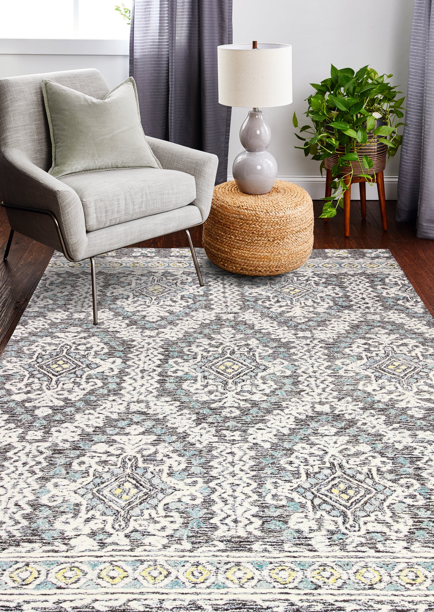 Bashian Verona R130 LC157 Slate Area Rug