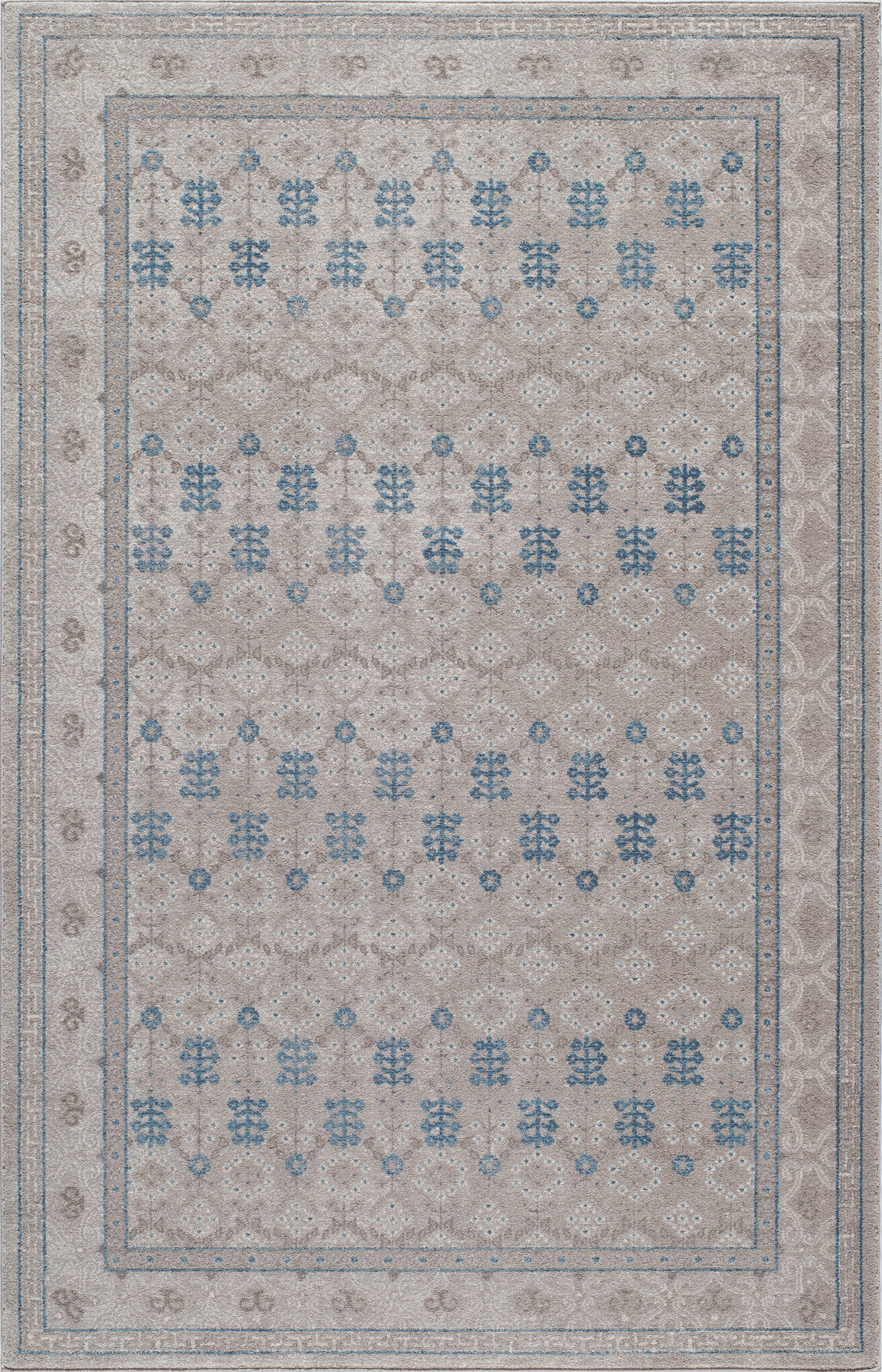 Harmoniously crafted designs are created in a bluish-grey palette in the Kerman Collection. A feeling of indigo is generated via unique color combinations. A nod to Antique Persian designs is given in subtle distressed looks. For added durability and ease of use, this collection is Machine-Made in Turkey from 100% heat-set polypropylene.