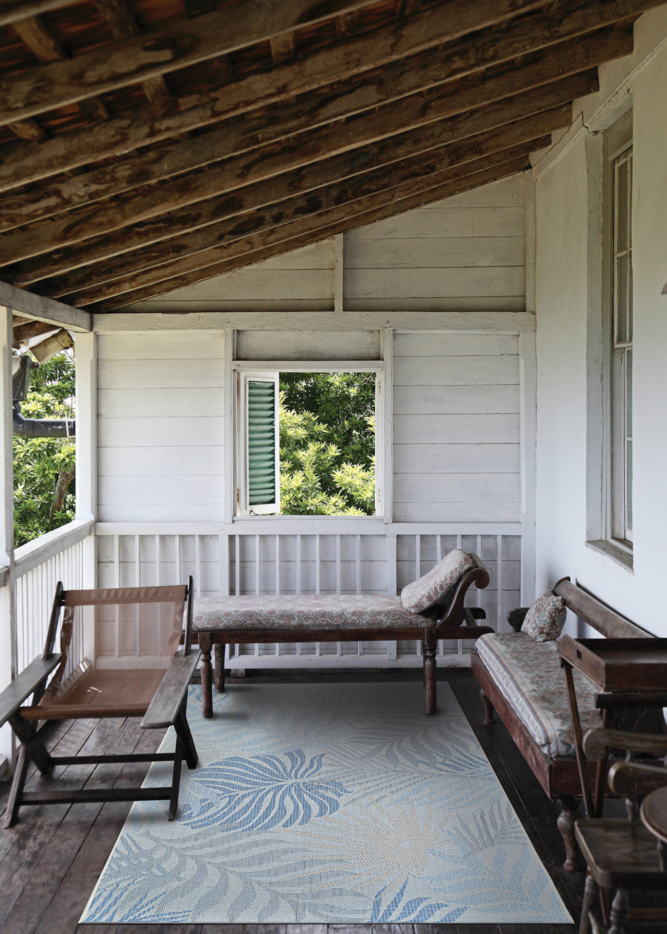 100% FIBER ENHANCED COURTRON POLYPROPYLENE, FEATURING A STRUCTURED FLATWOVEN CONSTRUCTION, SUITABLE FOR OUTDOOR/INDOOR USE, UV STABILIZED; MOLD/MILDEW RESISTANT
