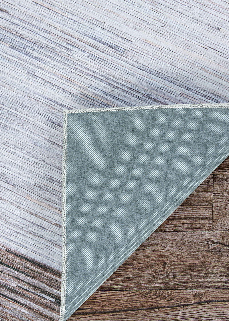 100% POLYESTER MACHINE-WOVEN BASE WITH A NON-SKID BACKING EMULATING COW HIDES IN VARIOUS PATTERNS