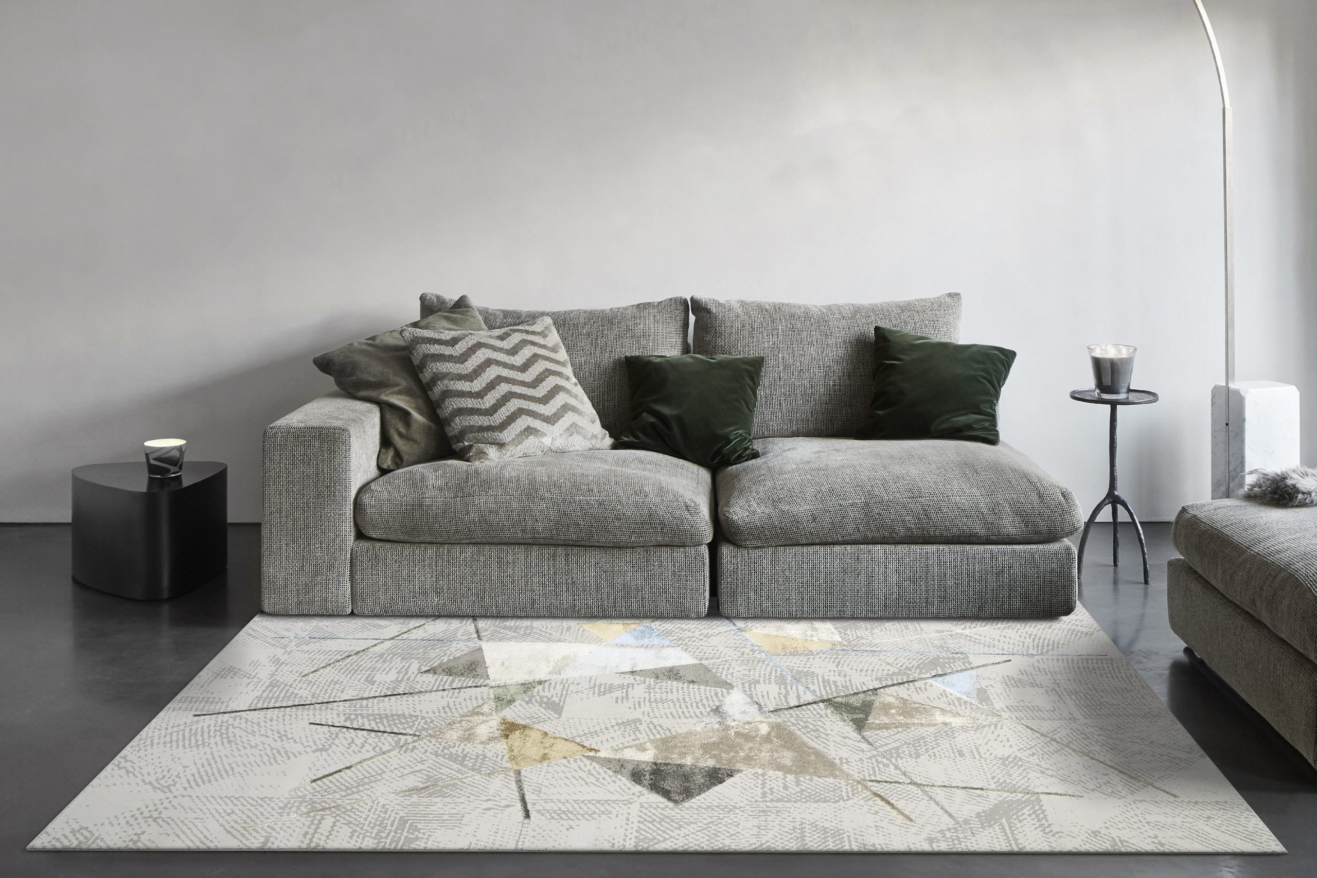 Reminiscent of framed wall art, the mid-century modern, asymmetrical geometric designs of Merit are sure to create some lasting gazes. The use of polyester allows for a smooth touch underfoot, yet the point count of these rugs give it a density that shows true value. The contemporary designs of this collection are complemented perfectly with contemporary colors such as gold, olive, and a pewter blue. The patterns of this collection truly make these rugs a statement, yet the construction makes them sustainable and practical. Do you have a question about the Dynamic MERIT 6658 999 Grey Area Rug? Call us now at 1-800-368-2621.