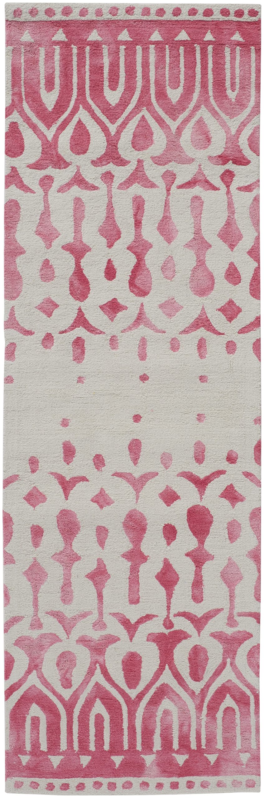 Varying distressed hues of pink on ivory, along with a modern printed ikat style design, creates an eye-catching focal point for your room. Hand-tufted in a looped weave, this rug will bring a burst of color to any space. Do you have a question about the Feizy Camila Geometric I8059 Pink Area Rug? Call us now at 1-800-368-2621.