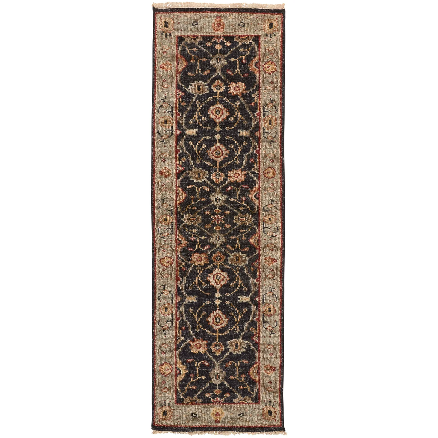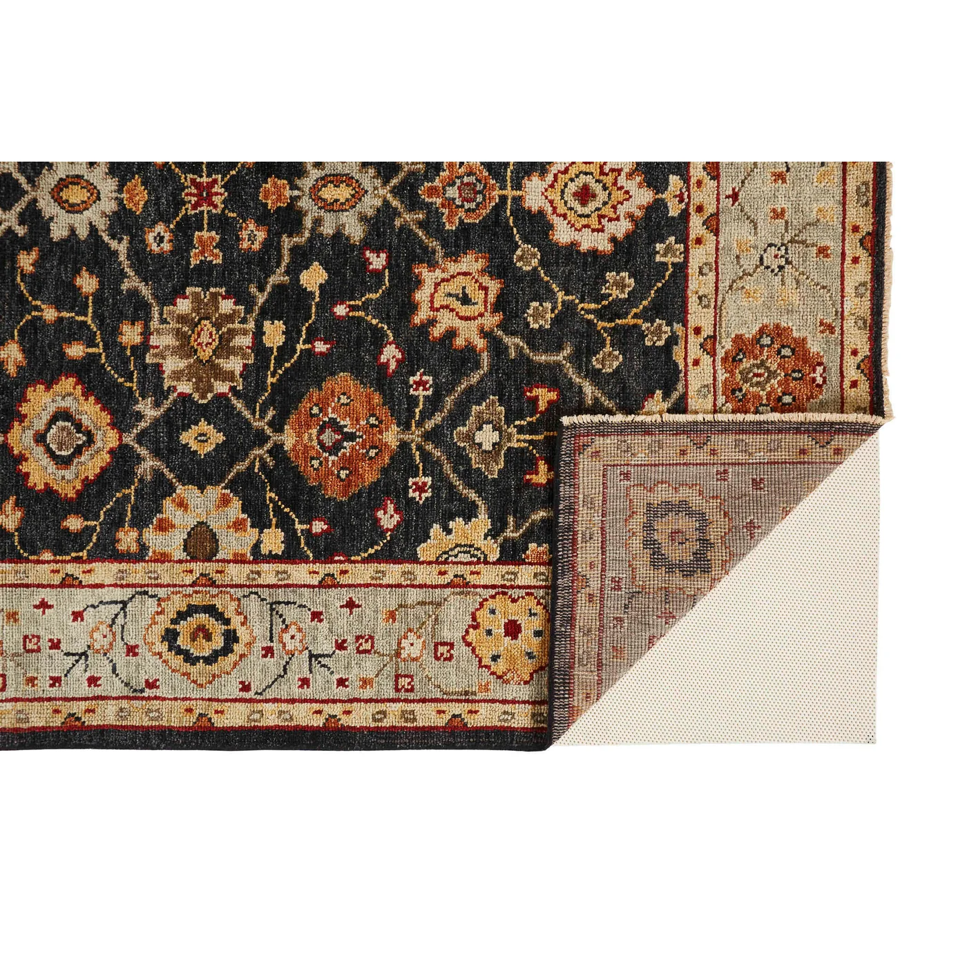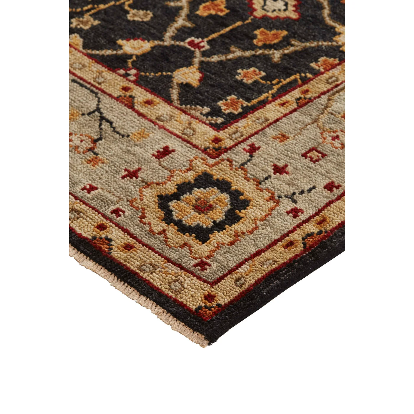 Traditional Oushak designs come to life in the Carrington Collection. Hand-knotted in pure wool, utilizing the age-old techniques of natural hand dying, each design offers varying degrees of color saturation in warm and cool tones throughout, creating visual depth with classic border motifs in updated traditional colors. Do you have a question about the Feizy Carrington Ornamental 6500F Black Area Rug? Call us now at 1-800-368-2621.