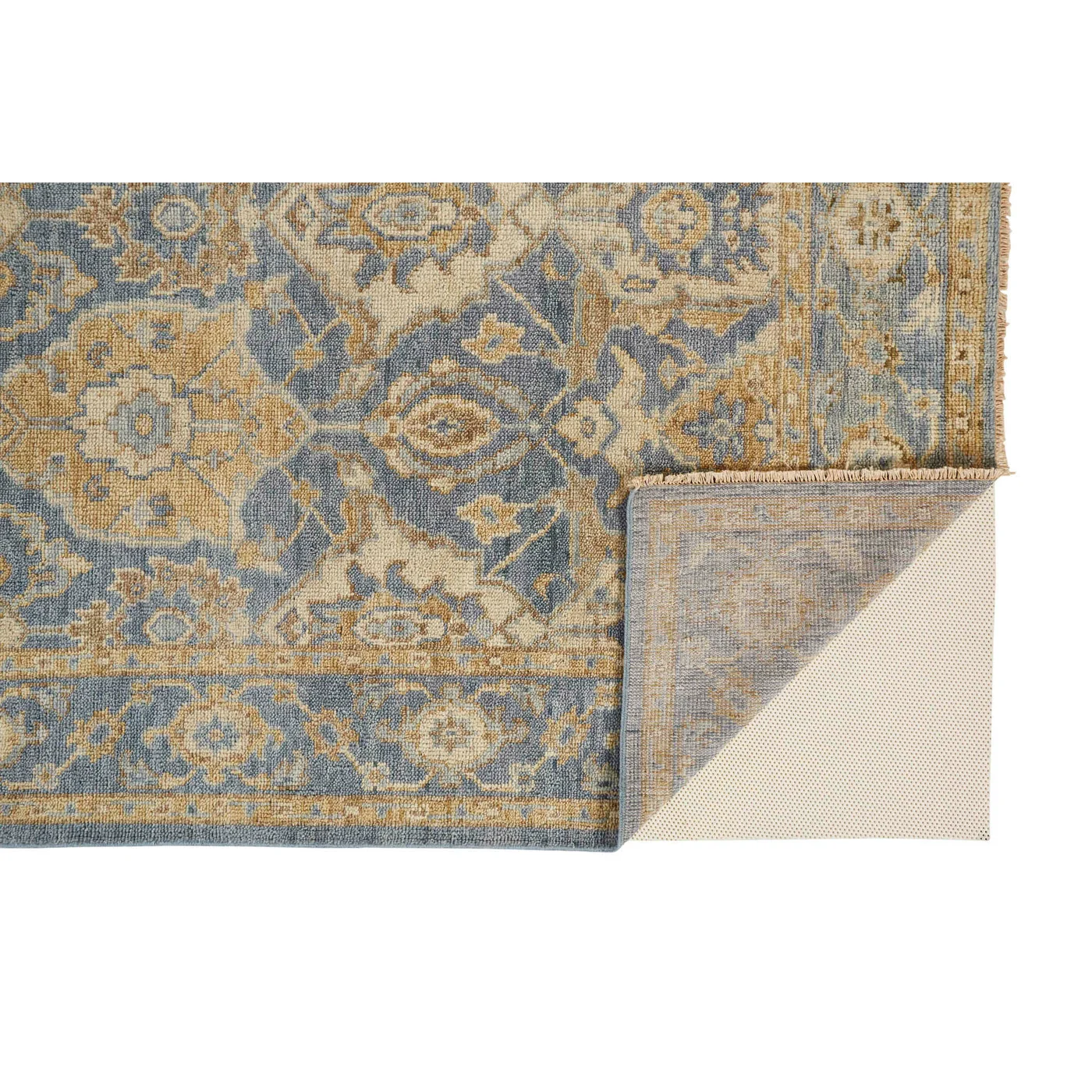 Traditional Oushak designs come to life in the Carrington Collection. Hand-knotted in pure wool, utilizing the age-old techniques of natural hand dying, each design offers varying degrees of color saturation in warm and cool tones throughout, creating visual depth with classic border motifs in updated traditional colors. Do you have a question about the Feizy Carrington Ornamental 6502F Blue Area Rug? Call us now at 1-800-368-2621.