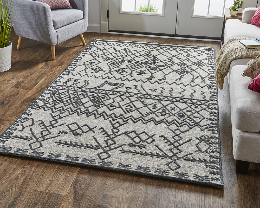 The Lusk Collection combines geometric and patterns to create a tribal style. These nomadic inspired designs are available in a neutral color palette of white, Grey, and charcoal hues. Hand-tufted by skilled artisans in India, this globally influenced collection brings a sense of world travel inside your home. Do you have a question about the Feizy Lusk Graphic I8081 Grey Area Rug? Call us now at 1-800-368-2621.