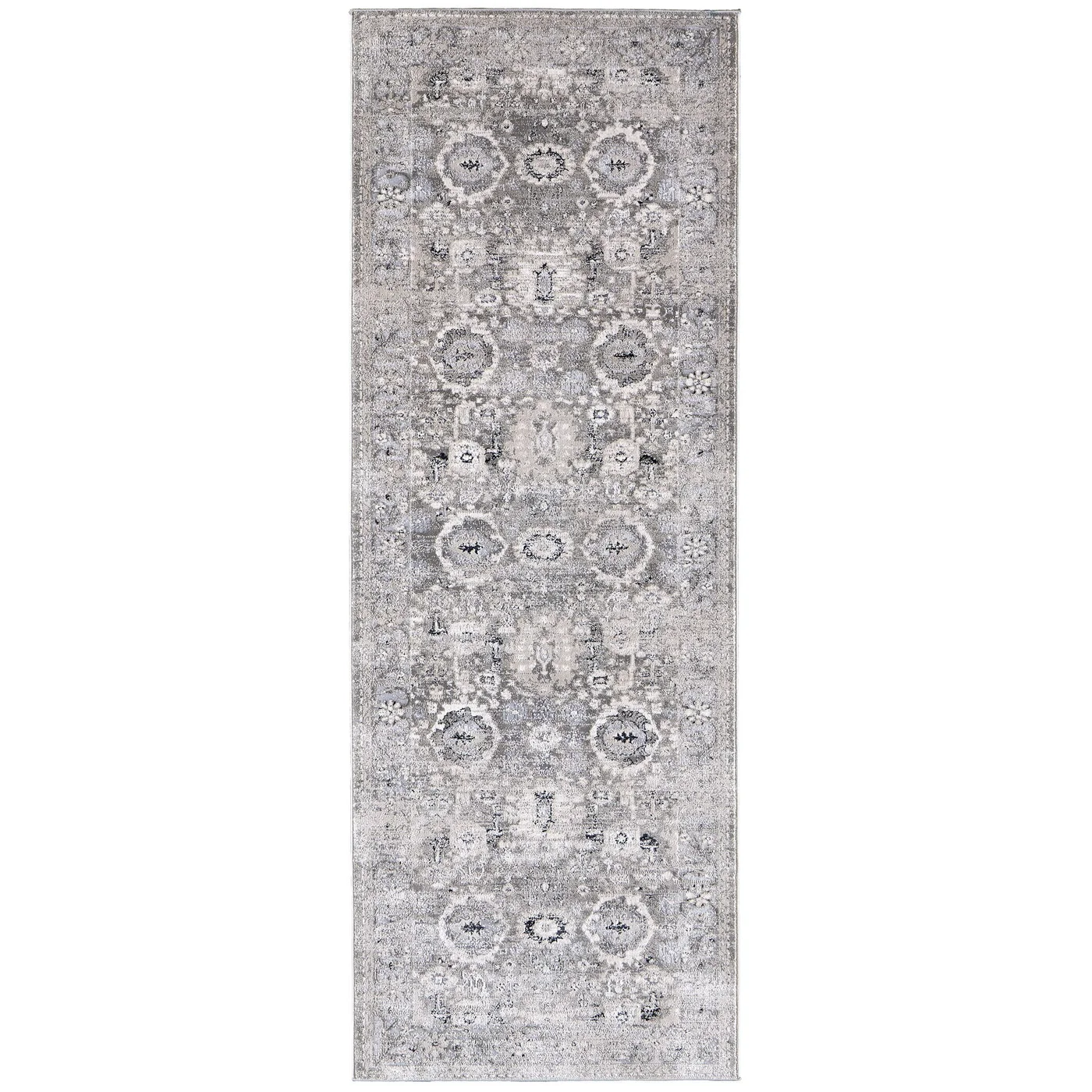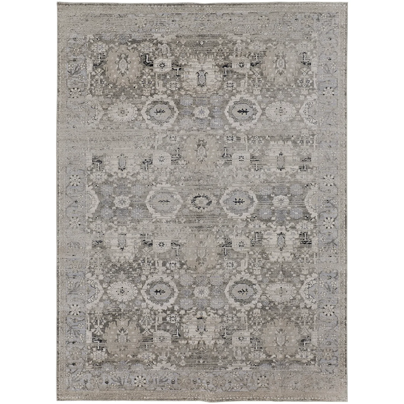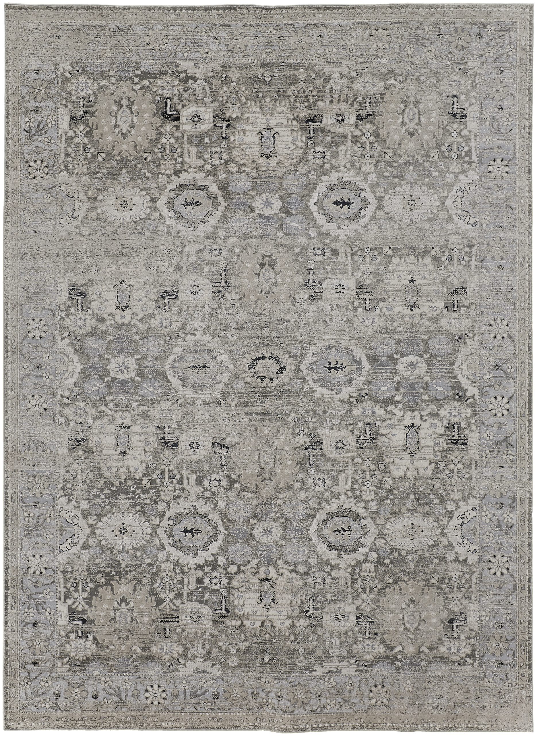 Resting at the cusp of charm and function, the stunning Macklaine collection boasts transitional distressed textures accented with subtle hints of black and silver metallic—effortlessly illuminating a soft tapestry of traditional designs. Each piece brushes a soothing blend of timeless beauty with cool cream tones for a muted yet modern glam aesthetic. Machine-woven for durability, the Macklaine collection adds the sought-after final touch to any living space. Do you have a question about the Feizy Macklaine Distressed 39FUF Ivory Area Rug? Call us now at 1-800-368-2621.