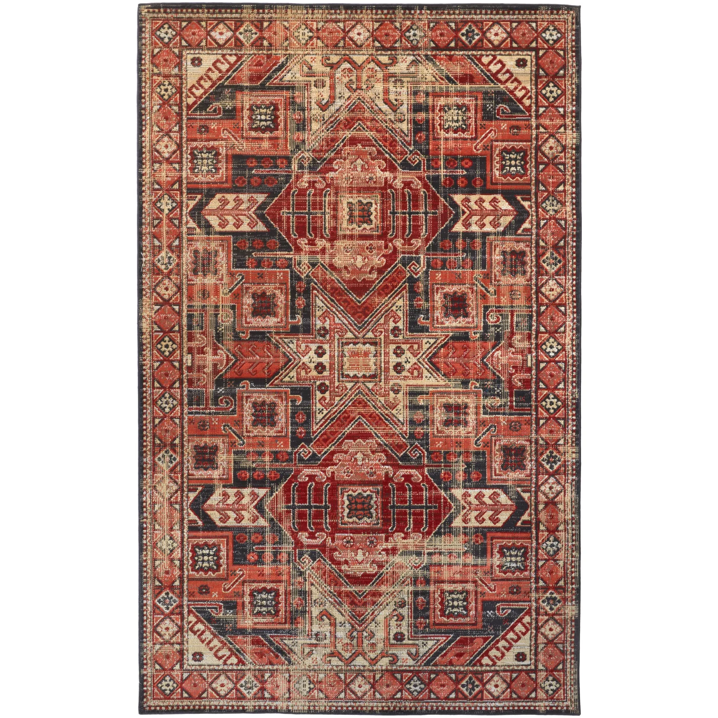 One look – that’s all it takes to be captivated by the Nolan Collection’s striking aesthetic. Rich colors and distinct, geometric tribal patterns are paired with distressed crosshatching to capture the essence of a vintage Kazak rug. This style, once reserved for the homes of the ancient elite, is reimagined as an accessible easy-care collection fit for modern indoor/outdoor spaces. Do you have a question about the Feizy Nolan Distressed 39BZF Red Area Rug? Call us now at 1-800-368-2621.