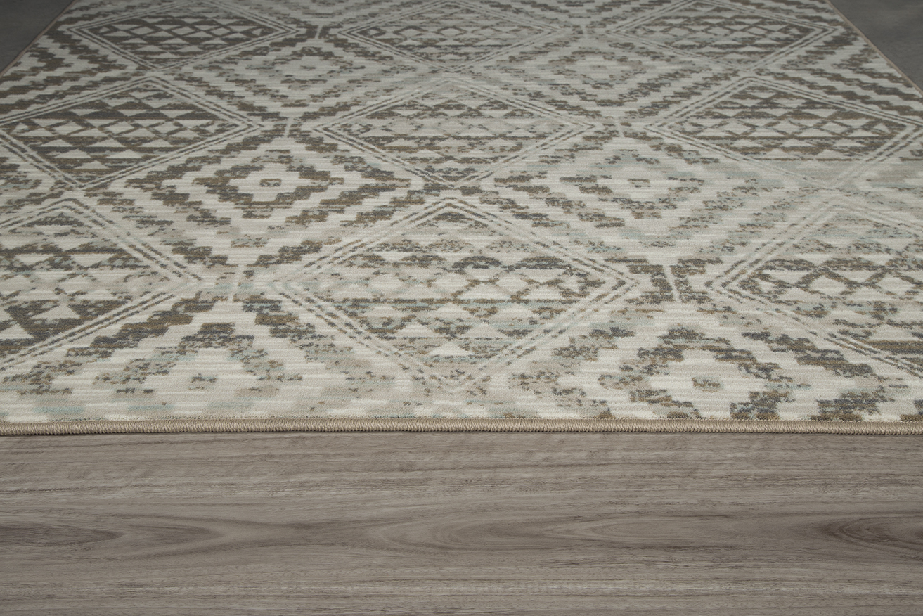 This Kenten Riverbed Beige diamond pattern from the Drayton Collection is an artful pairing of fine multicolored striations and a traditional motif. This rug’s vintage appeal is made in the shifts in shade and contrast in colors which enhance the appeal of the Kenton design in any home. This Collection explores a shared community and sense of place. This rug is inspired by the raw materials of a small textile community and their time worn face. Organic subtlety morphs with geometric clarity to shape our perspective through a historical lens. A lens of community. A lens of heritage. This elegant rug provides the perfect amount of home accent and unrivaled style, while being extremely soft, durable and responsibly made. The creamy neutral coloring in this rug creates the overall timeless and sophisticated tone that, when mixed with the geometric design develops a one of a kind experience for your home. With Milliken rugs you not only get original, creative designs, but you always get one of a kind service and a true dedication to your satisfaction.