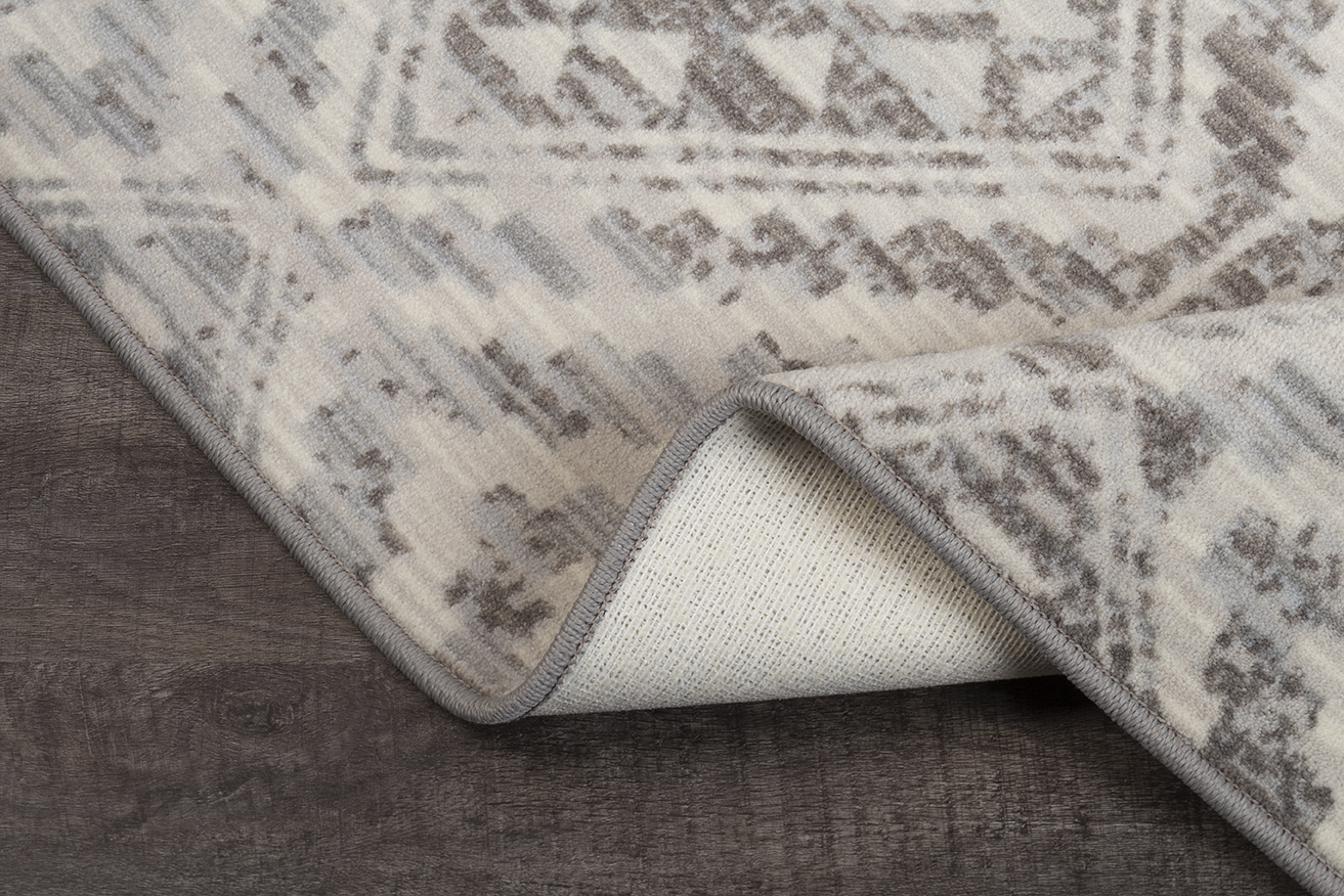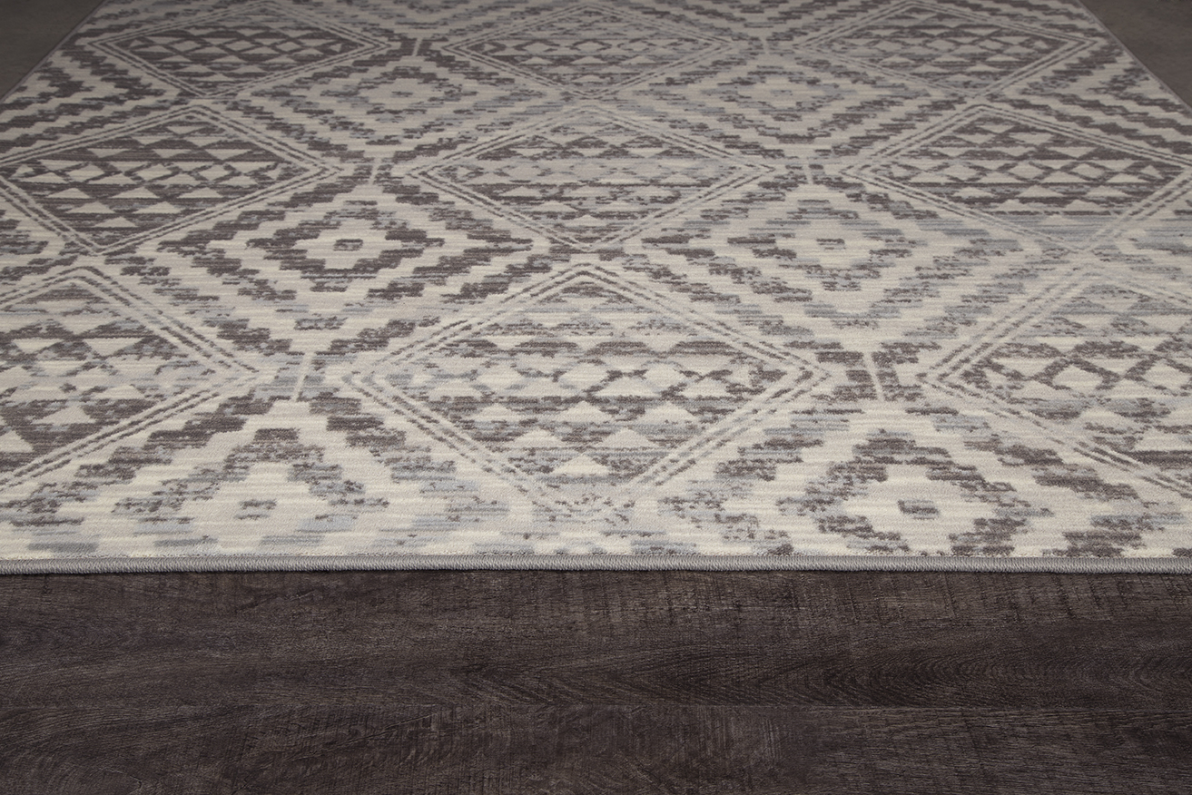 This Kenten Silversmith diamond pattern from the Drayton Collection is an artful pairing of fine multicolored striations and a traditional motif. This rug’s vintage appeal is made in the shifts in shade and contrast in colors which enhance the appeal of the Kenton design in any home. This Collection explores a shared community and sense of place. This rug is inspired by the raw materials of a small textile community and their time worn face. Organic subtlety morphs with geometric clarity to shape our perspective through a historical lens. A lens of community. A lens of heritage. This elegant rug provides the perfect amount of home accent and unrivaled style, while being extremely soft, durable and responsibly made. The creamy neutral and gray hues in this rug creates the overall timeless and sophisticated tone that, when mixed with the geometric design develops a one of a kind experience for your home. With Milliken rugs you not only get original, creative designs, but you always get one of a kind service and a true dedication to your satisfaction.