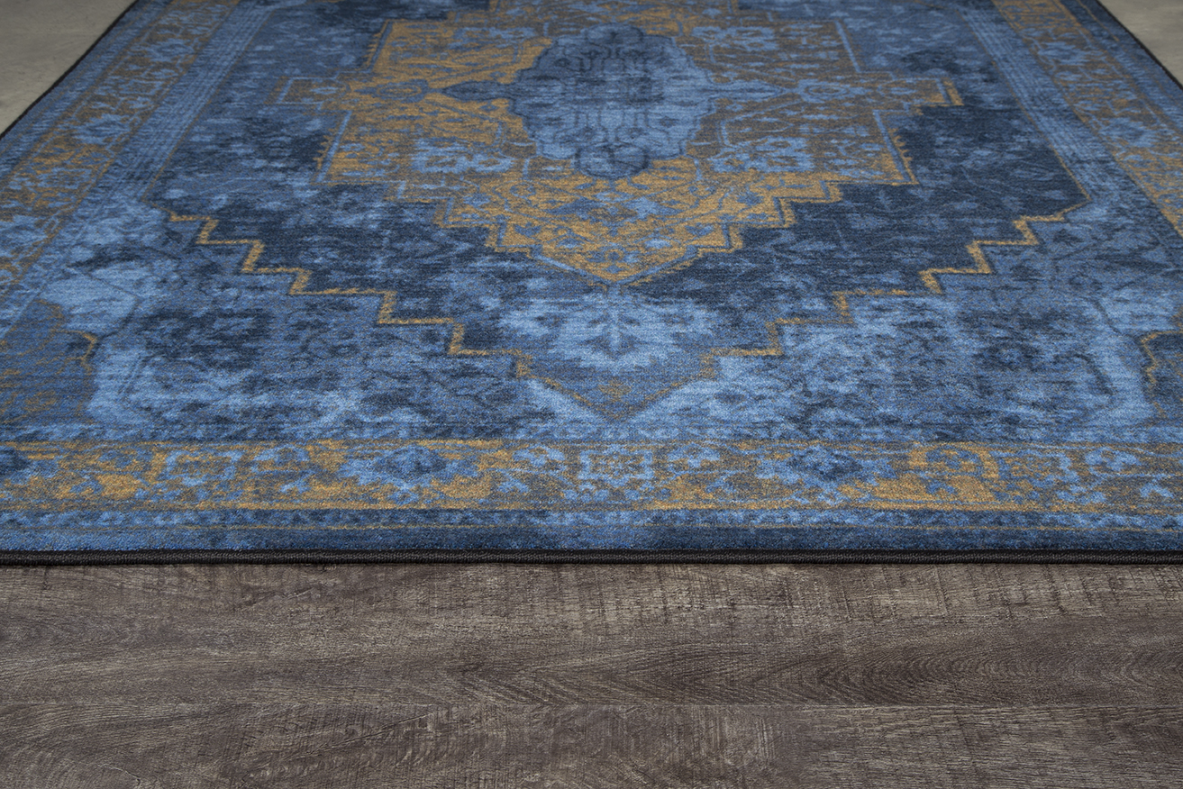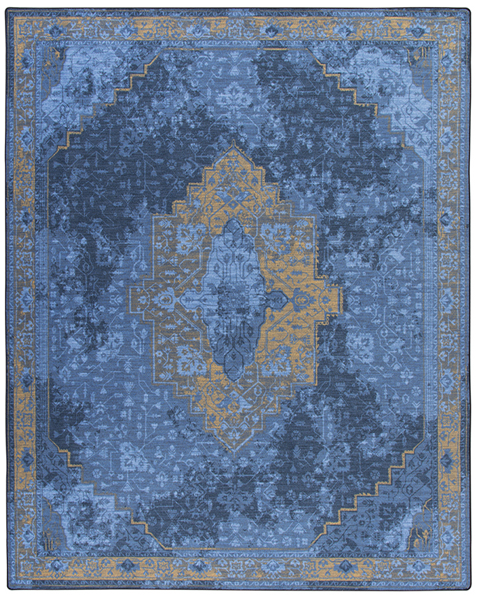 The Saxon Empire Blue rug from our Drayton Collection blends the Old world with the new by combining an ancient Persian motif with modern textural details. The subtle shading in this rug enhances the illusion of age by mingling sophisticated tones and bold, modern color. This Collection explores a shared community and sense of place. This rug is inspired by the raw materials of a small textile community and their time worn face. Organic subtlety morphs with geometric clarity to shape our perspective through a historical lens. A lens of community. A lens of heritage. This elegant rug provides the perfect amount of home accent and unrivaled style, while being extremely soft, durable and responsibly made. The effervescent blue combined with the metallic gold details, allows this rug to transform a home’s decor while also enhancing its energy. It is the perfect rug to kick start a new home or to update a design scheme. With Milliken rugs you not only get original, creative designs, but you always get one of a kind service and a true dedication to your satisfaction.