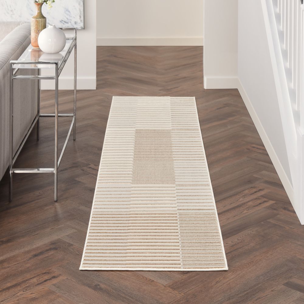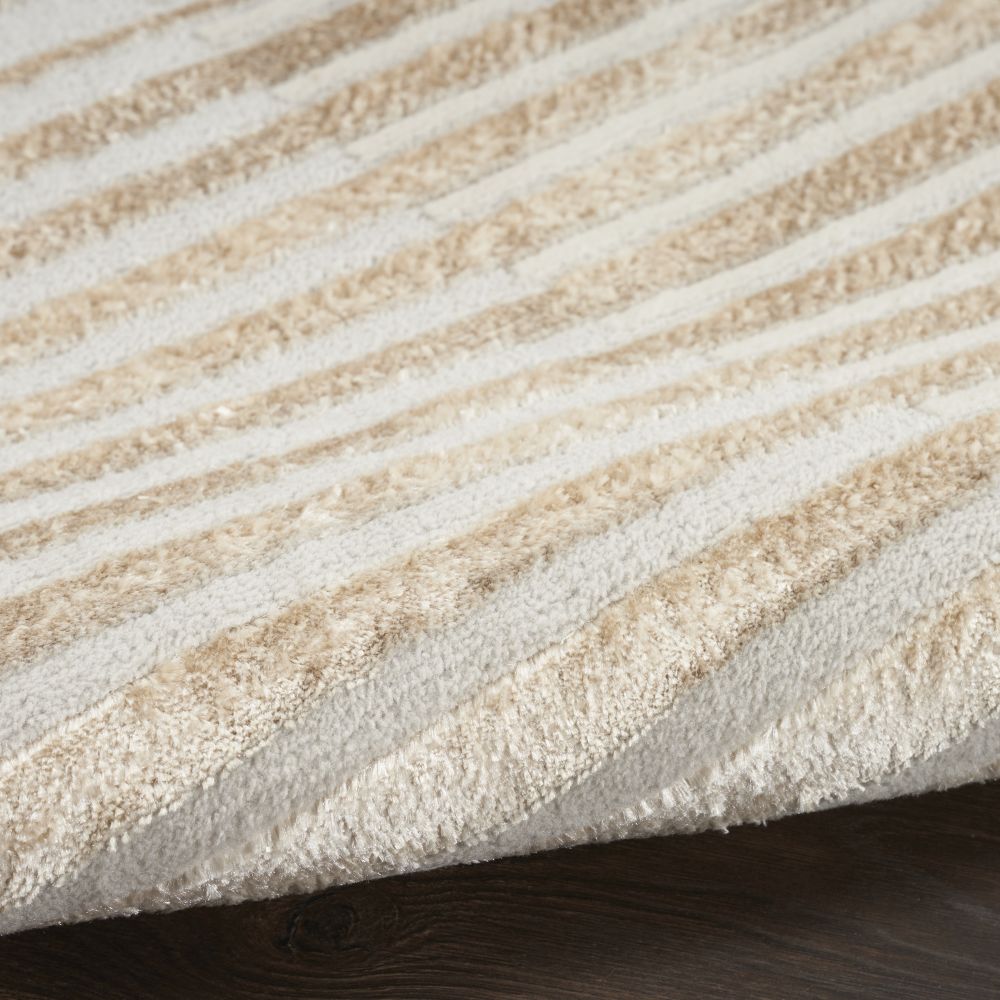 The Inspire Me! Home D?cor Brushstrokes Collection of area rugs brings distinctive style to your space. With softly textured patterns brilliantly illuminated by an attention-grabbing metallic sheen, these abstract rugs embody glamour. Brushstrokes is enhanced with subtle high-low textural variations and is made from a polypropylene and polyester blend for a look that is both exquisite and functional. Choose from a variety of colors and patterns to create a beautiful statement in your living room, bedroom, or hallway.