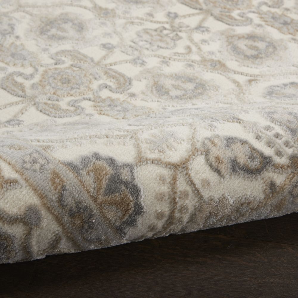 Indulge in elegance with the opulent look of the Grand Villa Collection from kathy ireland? Home by Nourison. Both sumptuous and practical, Grand Villa presents the patterns of French country and Persian rug traditions in a collection of power-loomed area rugs that are low pile, low-shed, and easy-care. Their style elements include center medallion or all-over designs, with ornamental or narrow borders, all with an intriguing vintage look. The subtle palette of muted neutrals is extremely versatile for contemporary d?cor, and gives these grand designs a fresh and modern feel. Enjoy a touch of grandeur in your living or dining room, bedroom, family room or home office, with a Grand Villa area rug.