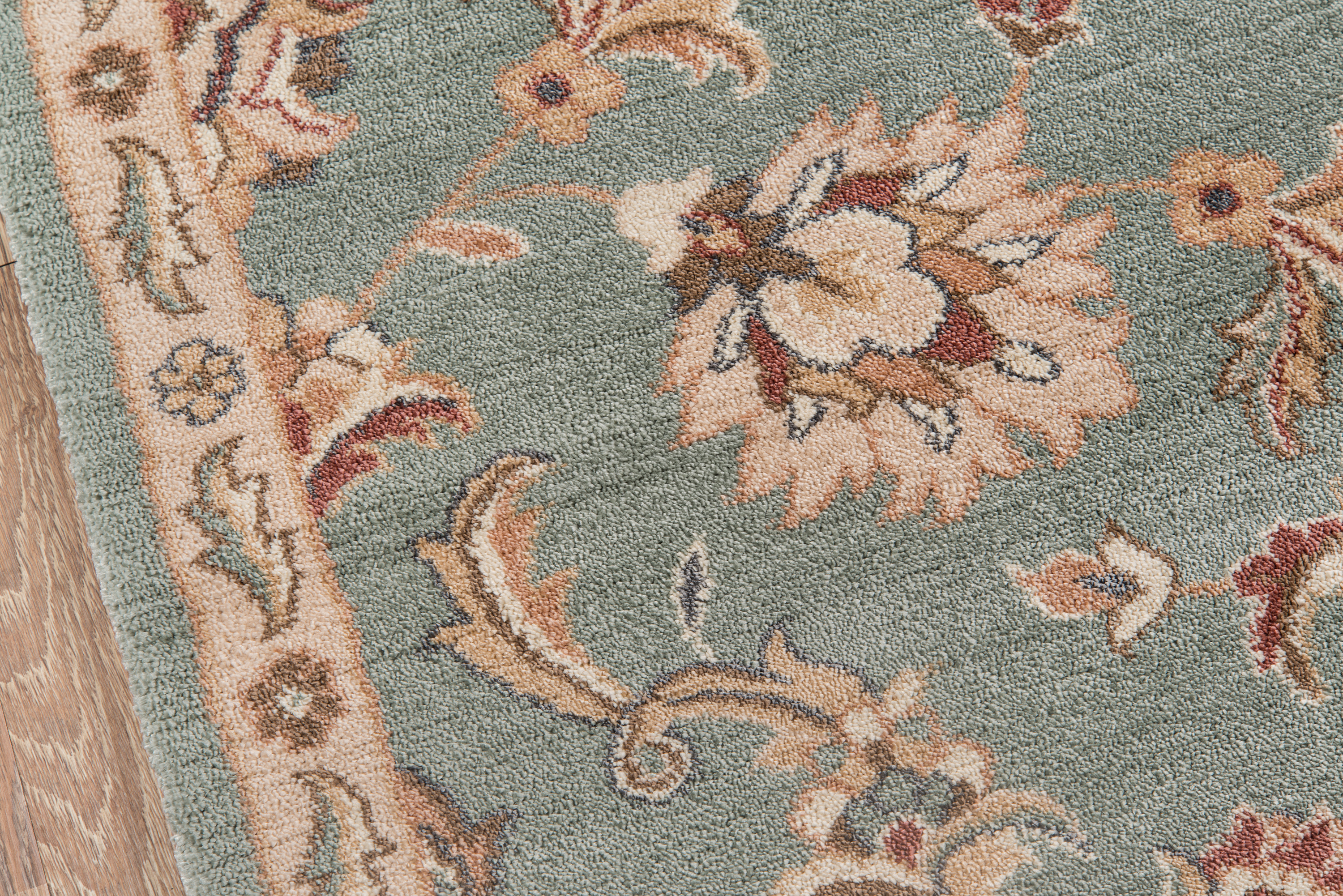 Classical embellishment is a key design element in the botanical details of this traditional area rug collection. The earthy color palette within each rug gives antique Persian carpet motifs an organic point of view, as elemental tones of charcoal, beige, sage green and rust red reflect the hues of the natural world. Power loomed from polypropylene fibers and finished with a jute backing, the decorative floorcovering assortment delivers elevated estate style to down-to-earth interiors.