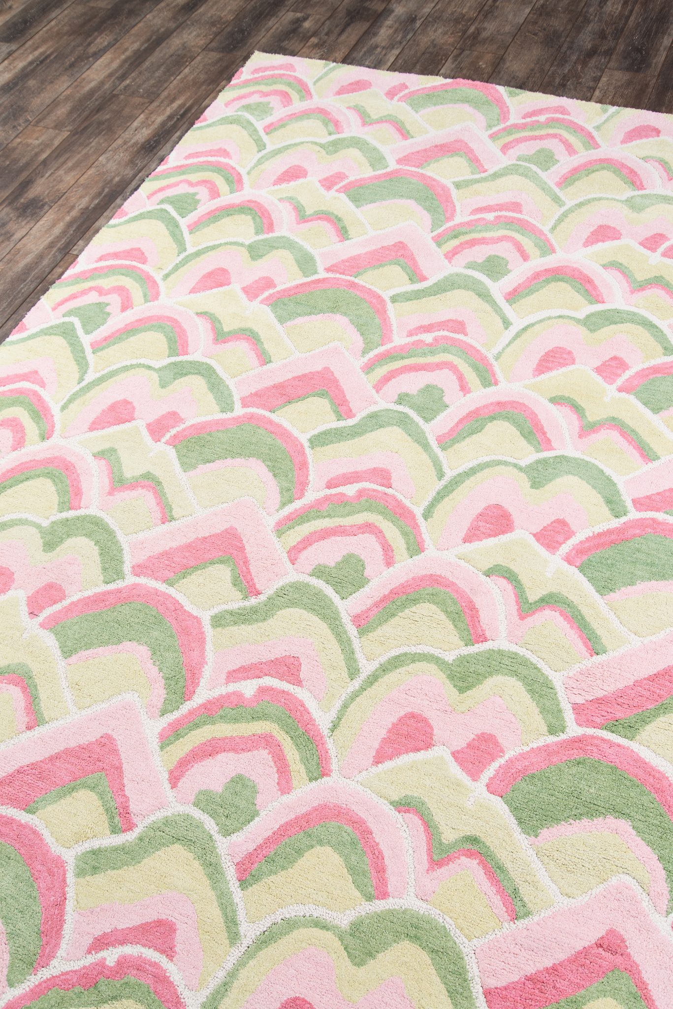 Painterly perspectives fill the field of this Madcap Cottage by Momeni rug collection with ornamental grandeur. Each carpet becomes a canvas for vivid watercolor designs as hand-tufted techniques transform natural cotton fibers into elegant tapestries fit for every floor. Lush mountainscapes and overlapping scallop designs suggest traditional chinoiserie motifs while a verdant color palette carries the classical design themes into the present. Bring the adventure home.