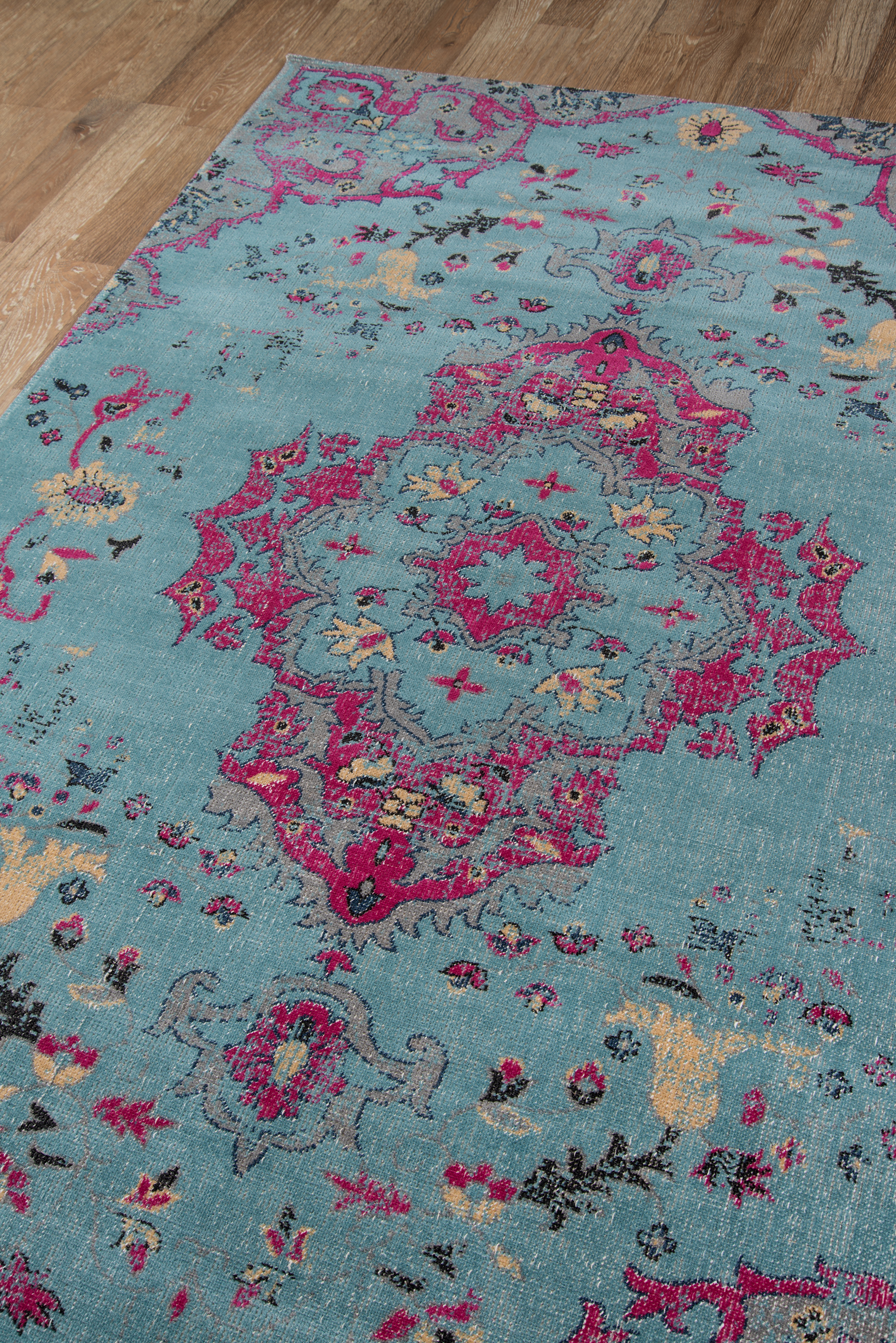 The luxe look and feel of Jewel area rugs invites you to indulge in every step. Conceived with classical design in mind, the colorful rug assortment reinvents classical Persian carpet motifs in vivid pops of pink and chambray blue. The vibrant palette is unmistakably modern, as iconic medallions, vines and floral motifs fill the field and ornamental background of each rug in elaborate detail. As durable as it is decorative, polypropylene fibers create plush floorcoverings that are posh but not precious.