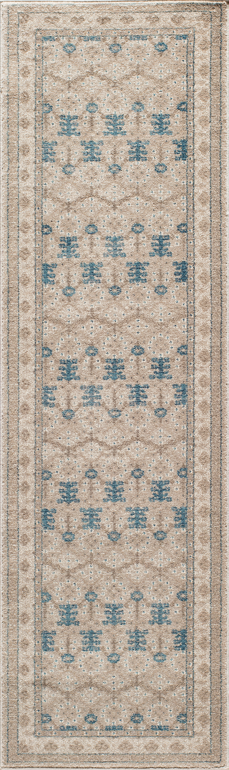 The pretty patterns of this traditional area rug find inspiration in both Persian and Parisian design motifs. With floral gestures reminiscent of the French Renaissance, softly subdued shades of blue and ivory create scrolling borders and elegant palmette patterns that suggest the influences of classic Persian artisans. Designed with superior quality and care, the intricate design and slightly distressed appearance is power loomed from polypropylene fibers for enduring beauty underfoot.