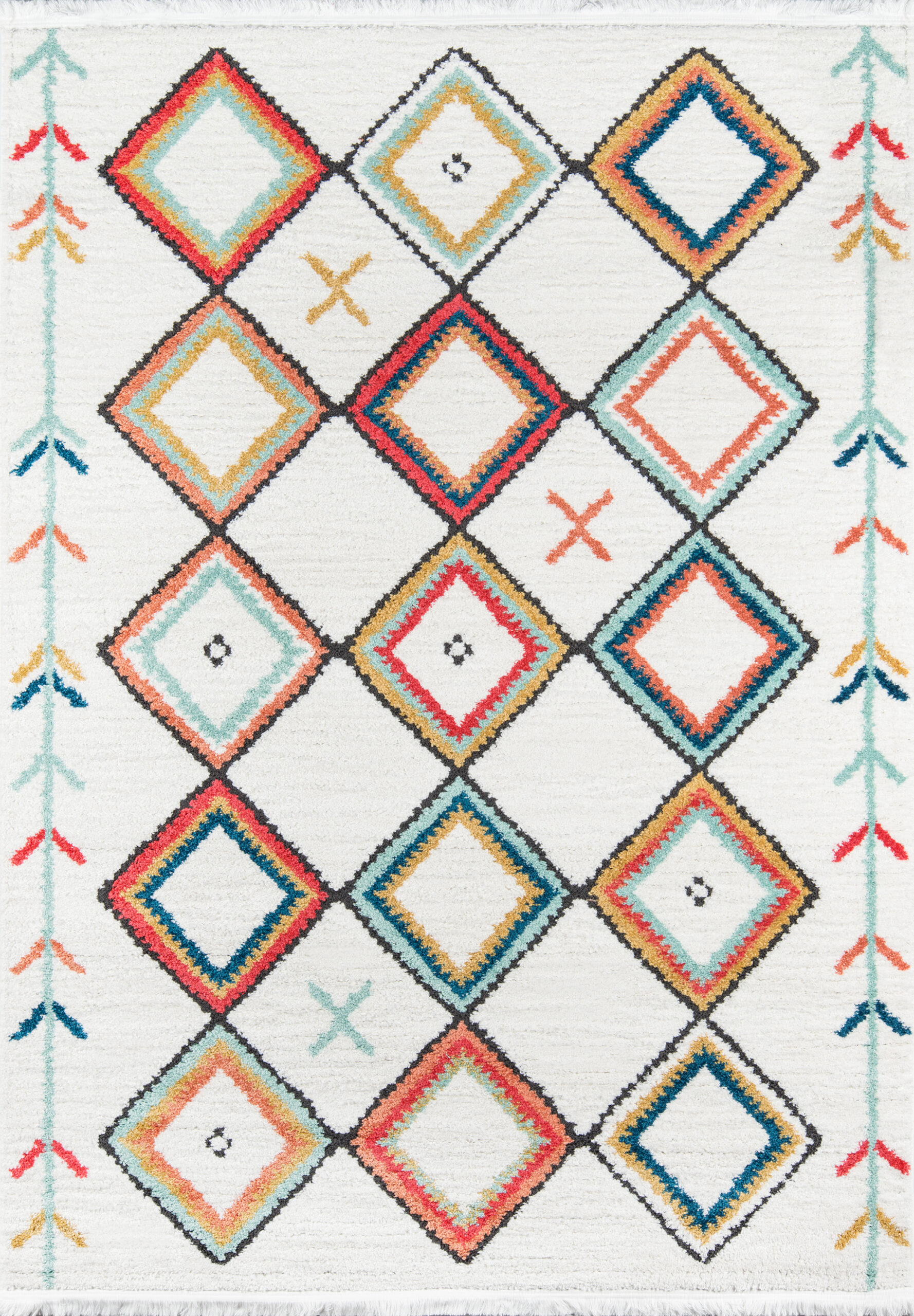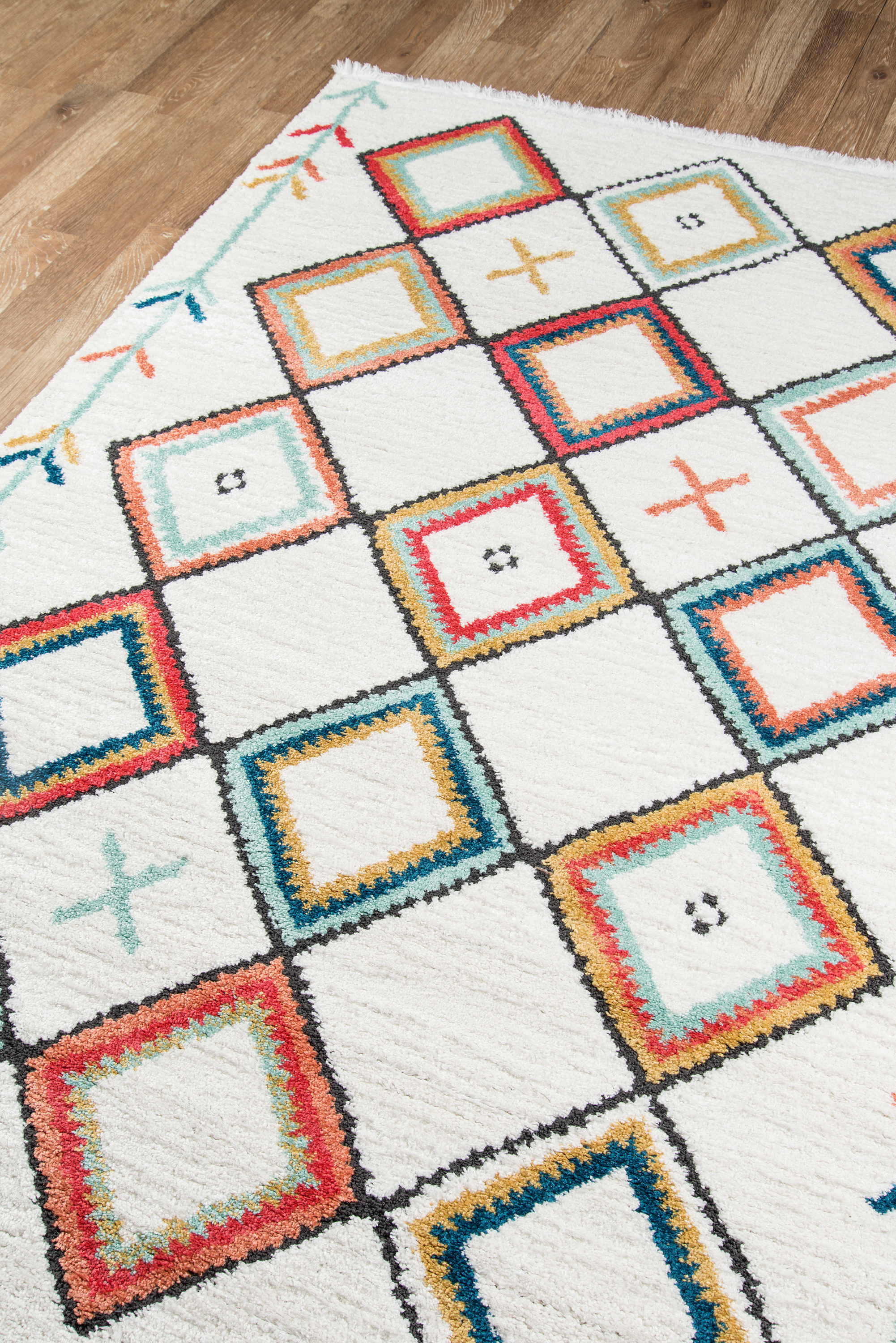 Southwestern influences abound in the tribal style of the Monaco. The visionary design of this decorative floor covering assortment pays tribute to the traditional motifs of antique Gabbeh and Kilim carpets with an updated color palette that’s fresh and fun. Patterns range from colorful combinations of coral red, aqua blue and ivory to graphic black and white, with concentric diamonds, flowers and fringe. Dense synthetic fibers depict the global design of each area rug in exquisite detail.