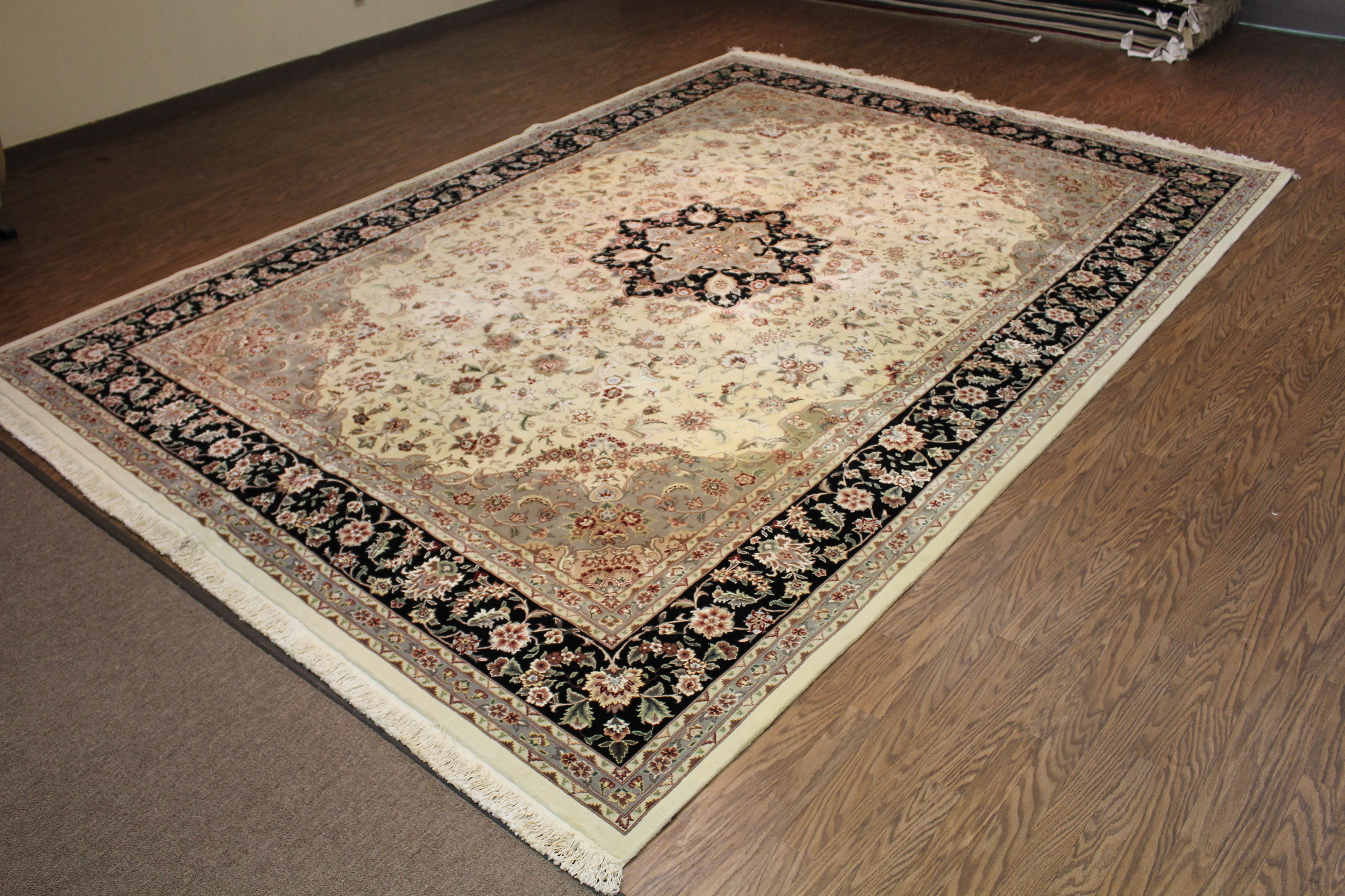 This is a beautiful Traditional, One-of-A-Kind Area Rug with a main color of Black.