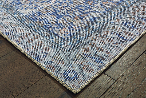 The Sofia collection recreates the essence of a one of a kind antique hand-knotted rug. Machine-woven of polyester chenille with a recycled cotton back, this collection of distressed traditional patterns is a great finishing touch to any room. Finished with an intricate blanket stitch, Sofia integrates old world sophistication with the on-trend colors of today. Do you have a question about the Oriental Weavers SOFIA 85811 Blue Area Rug? Call us now at 1-800-368-2621.